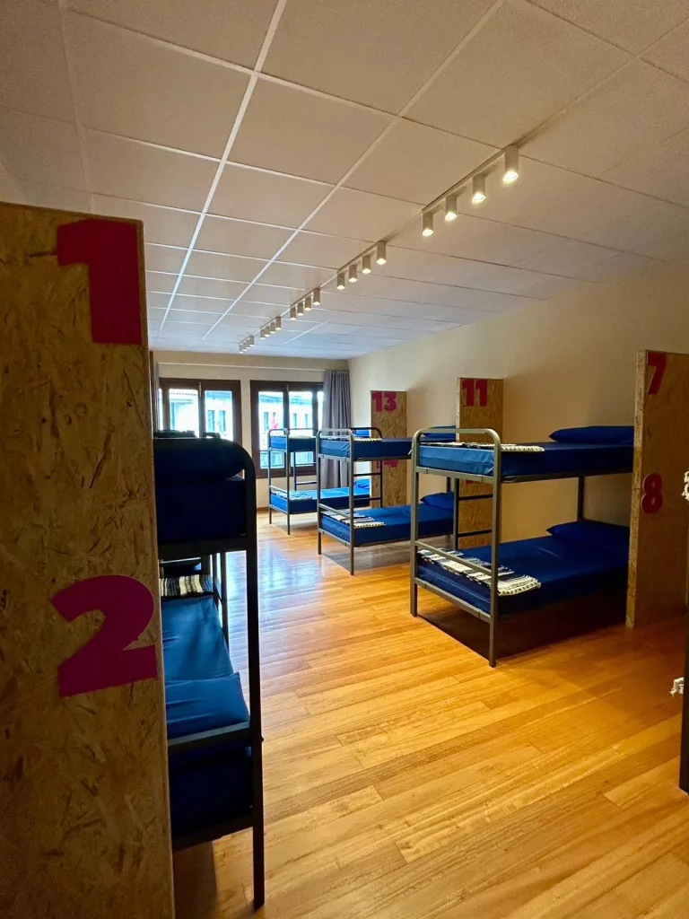 Tenemos 24 plazas, repartidas en dos habitaciones de literas con luz de lectura, conexión USB, ventilación y armario individual con llave.